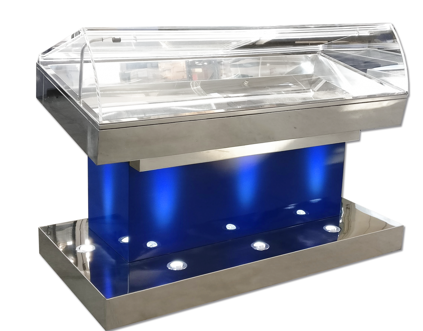 Fusione di qualità e design, L'espositore per pesce fresco Mod. Orca, diventa parte integrante dell’arredamento di ristoranti e locali di lusso. Ciò che rende unico questo espositore per pesce fresco o mitilii, è la grande durevolezza: interamente in acciaio inox, rimane inalterato nel tempo, nonostante la salinità con cui è continuamente a contatto.
